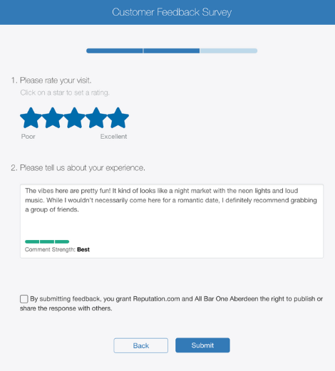 - Survey Comment Response Strength Meter: To encourage more detailed and meaningful feedback, we’ve introduced a strength meter. This visual indicator helps respondents gauge the quality of their comments, leading to richer, more useful responses.