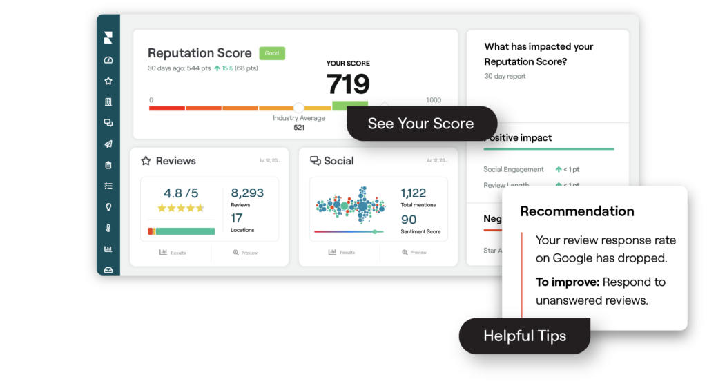 Utilize Reputation’s insights capabilities to understand how your review performance is affecting your Reputation Score.