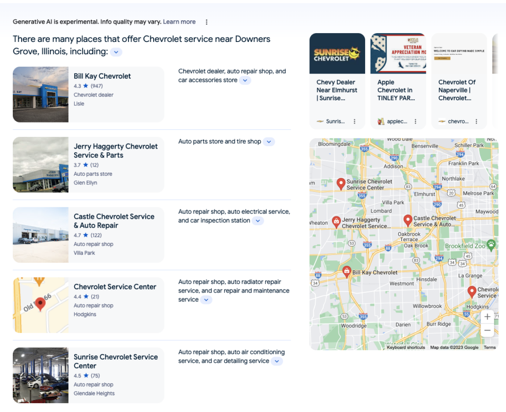 Now let’s try a more refined search – this time, service departments for Chevrolets: