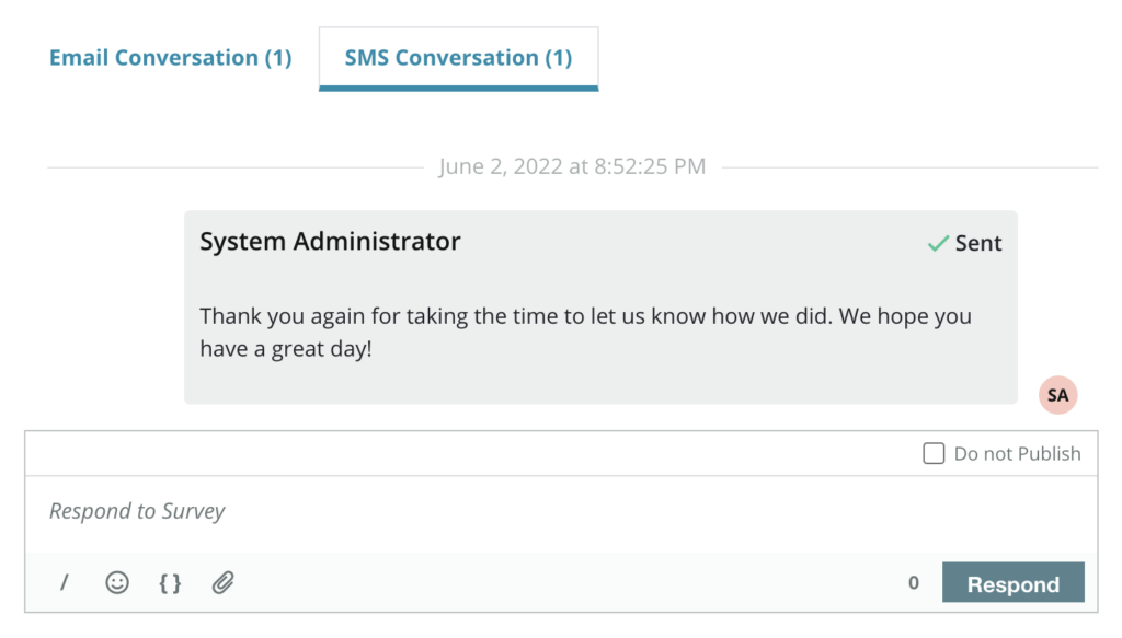 In addition to the above, Reputation’s new Survey Results Feed also supports multiple response channels. This means the replies you send to customers from the platform can reach them via email or SMS, and their replies from either channel will in turn appear within the platform for you to read.