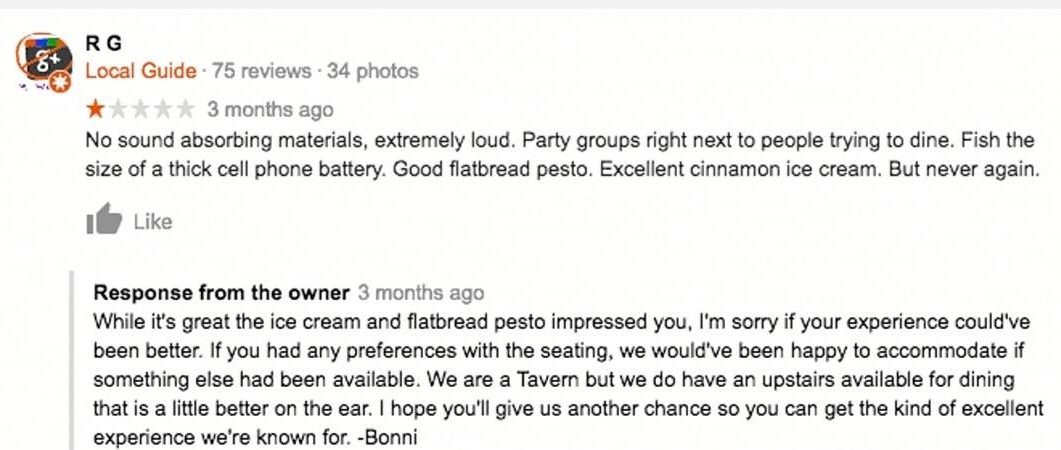 Once you have made a change, let your customers know. See how one restaurant owner responded to a negative review.