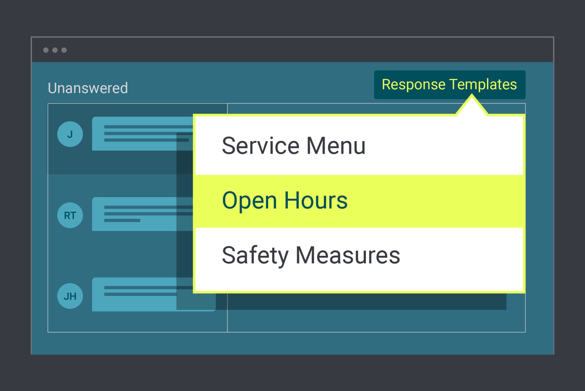 Once you start proactively monitoring your messaging channels, you may find that customers often ask the same questions — about menu offerings, hours of operation or safety measures, for example. Messaging enables you to create Response Templates to scale your responses and quickly answer frequently asked questions. Templates can include emojis, images or even .pdf files to provide thorough information and increase engagement.