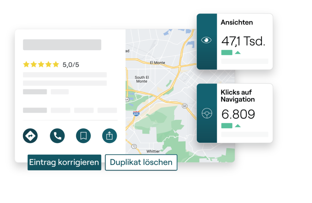 Verwalten Sie alle Ihre Unternehmenseinträge ganz einfach von einem Ort aus und verbessern Sie gleichzeitig die Suchergebnisse und die lokale SEO.